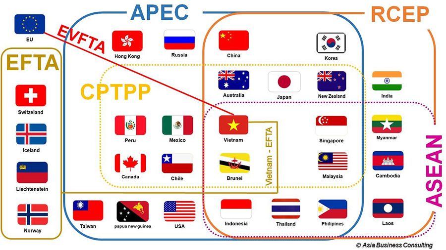 - VN – EAEU FTA: Vietnam, Russia, Belarus, Armenia, Kazakhstan, Kyrgyzstan